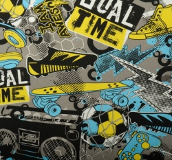 Teplákovina počesaná potisk "Goal time"na šedé