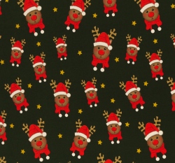 Teplákovina potisk sob Rudolf na zelené, lehce počesaná