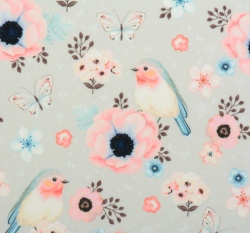Softshell potisk ptáčci mezi motýlky a květy na šedé