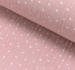 Dvojitá gázovina / mušelín bílé puntíčky na růžové