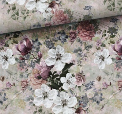 Teplákovina potisk jabloňové květy na šedé