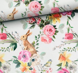 Teplákovina potisk jarní květinky se zajíčkem