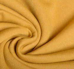 Teplákovina počesaná hořčicová s třpytivými nitkami