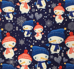 Teplákovina počesaná potisk sněhuláci v čepici na tmavě modré