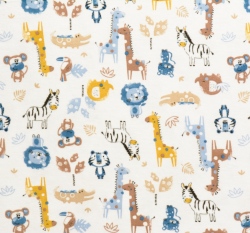 Bavlněný úplet safari zvířátka na zaprášené bílé