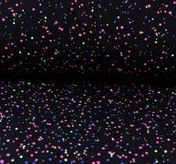 Teplákovina neon puntík různý na tmavě modré
