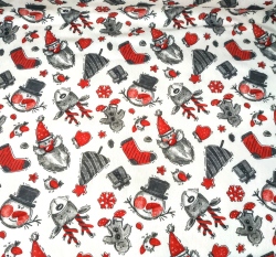 Teplákovina, mikinovina počesaná zimní, vánoční sobi, sněhuláci, perníčky, stromečky na smetanové