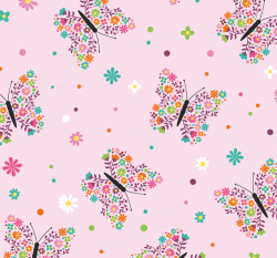 Úplet potisk květinoví motýlci na růžové