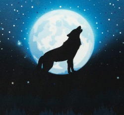 Panel Wolf Moon - vlk za úplňku na modré