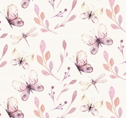Teplákovina potisk motýli mezi větvičkami na ecru