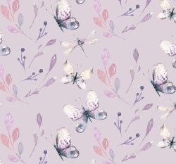 Teplákovina potisk motýli mezi větvičkami na světlé lila