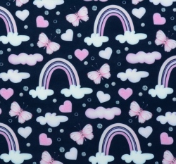 Pružný softshell motýlci mezi duhami na tmavě modré, s fleecem