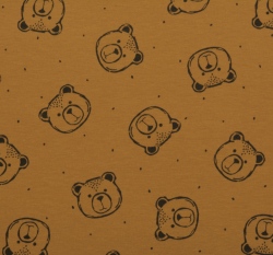 Teplákovina počesaná potisk medvídci na hořčicové, BIO
