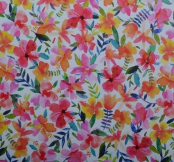 Teplákovina potisk malované květy na bílé