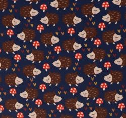 Softshell potisk ježci s muchomůrkami na tmavě modré s fleecem