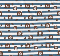 Úplet vykukující medvídci na indigově modro - bílých pruzích