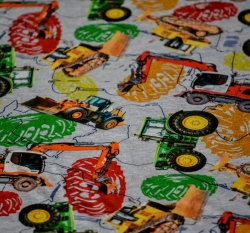 Teplákovina potisk traktory, bagry mezi barevnými pneumatikami na šedé