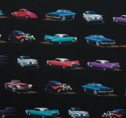 Bavlněná americké plátno potisk auťáky na černé