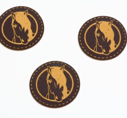 Štítek na oblečení kulatý "kůň", koženkový, imitace tmavé kůže