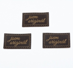 Štítek na oblečení "jsem originál", koženkový, imitace tmavé kůže