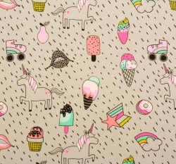 Úplet potisk neonoví jednorožci mezi zmrzlinami na šedé
