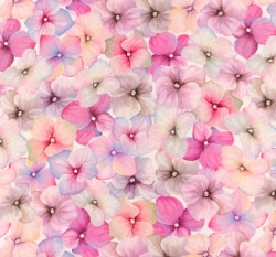 Úplet potisk růžovofialová kvítka hortenzie na bílé