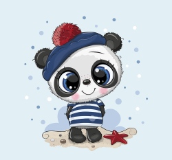 Panel panda v pruhovaném triku a modré čepici