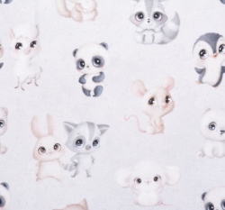 Bavlněné plátno roztomilá zvířátka na šedé