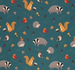 Softshell potisk lesní zvířátka na petrolejové s fleecem