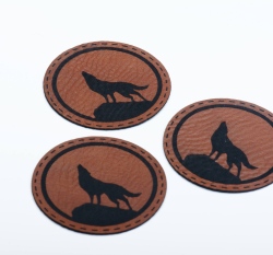 Štítek na oblečení kulatý "vlk", koženkový, imitace tmavé kůže