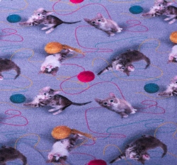 Úplet potisk hravá koťata s klubíčky na modrošedé 180 g