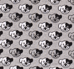 psí hlavičky: teplejší verze: Pletený žakár hlavičky pejsků na šedém melé
