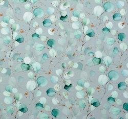 Úplet potisk lístky eukalyptu na šedé, BIO