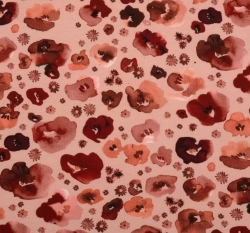 Úplet potisk vlčí máky hnědo-červené na starorůžové, BIO