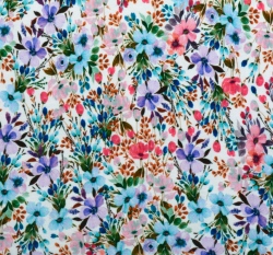 Viskózový úplet potisk květiny na bílé