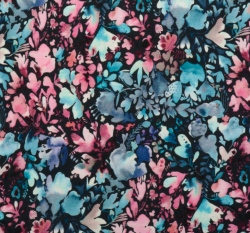 Viskózový úplet abstraktní květinový vzor na námořnické modré