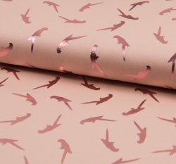 Úplet potisk metalický papoušek na starorůžové