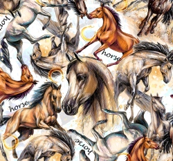 Teplákovina potisk divocí koně s podkovou na bílé