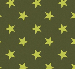 Teplákovina potisk neonově zelené hvězdičky na khaki zelené