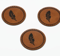 Štítek na oblečení kulatý "peříčka", koženkový, hladký povrch