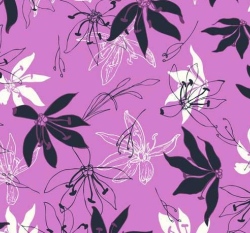 Úplet potisk černé a bílé lilie na šeříkově fialové
