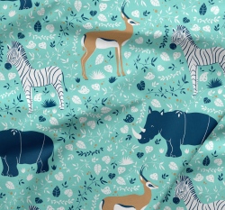 Teplákovina potisk exotická zvířátka na mintové