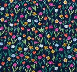 Úplet potisk kvetoucí zahrada na tmavě modré