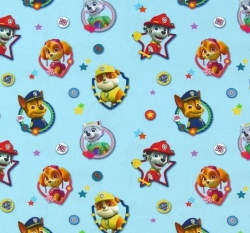 Úplet potisk "vykukující" hrdinové z Tlapkové patroly na světle modré
