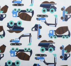Oboulícní bavlněný úplet stavební auta na bílé