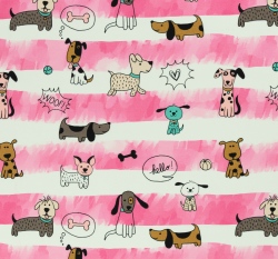 Úplet potisk pejsci na růžovo-bílých proužcích