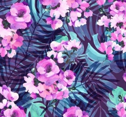 Úplet potisk růžové květy mezi kapradím