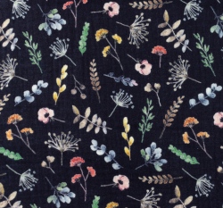 Dvojitá gázovina/mušelín květy na tmavě modré