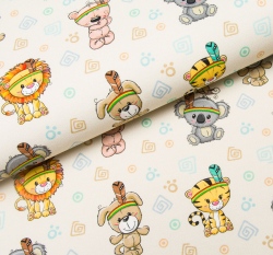 Teplákovina potisk zvířátka si hrají na indiány na béžové