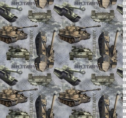 Teplákovina počesaná potisk vojenské tanky na "pancéřovaném" podkladu